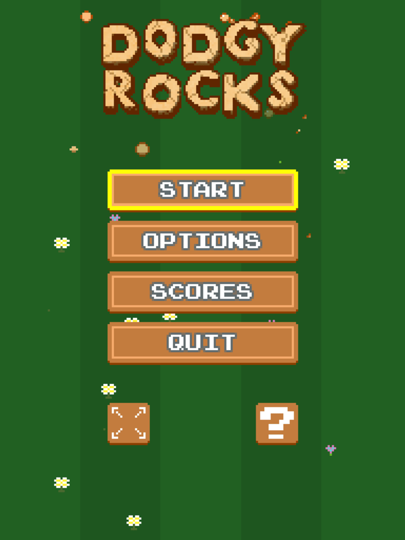 Dodge, dodge, dodge, dodge and ... uh ... dodge! Crazy high-speed endless arcade thing-dodging in an 8-bit style. You'll just have to have one more try! Dodge the rocks and other projectiles coming your way for as long as possible. Dodge, dash, kick and smash your way out of tight spots to survive just one more wave. Discover and master advanced moves to rack up your bonus and climb the online leaderboards, before testing yourself against the next difficulty level. Are you ready for NIGHTMARE? We don't think you are. Dodgy Rocks. How dodgy can you get?