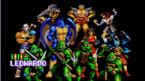 The Genesis version uses the standard three-button controller, with only two buttons for attacking (punch and kick). To perform stronger punches or kicks, the player must hold the directional pad towards the opponent while pressing either attack buttons. The third button is used for taunting. Some of the stages in the game feature destroyable scenery that gives the player and their opponent access to new areas in the stage. As well as their special moves, each character has a 'killer' attack which is only accessible when they are close to death and the red part of the characters' life gauge at the top starts flashing. This is done by pressing the Taunt button in conjunction with a specific D-Pad motion. These moves nearly take out the other character's life gauge completely. The game has eight playable characters, which includes the four Turtles and Casey Jones, as well as April O'Neil (whose active role differs from the versions of the character featured in other games), Ray Fillet (a character from the Teenage Mutant Ninja Turtles Adventures comics), and Sisyphus (an original character, named Musha Beetle in the Japanese version). The player can adjust their power and speed after selecting their character. The music in this version was composed by renowned video game composer Miki Higashino, in collaboration with Masanori Adachi.