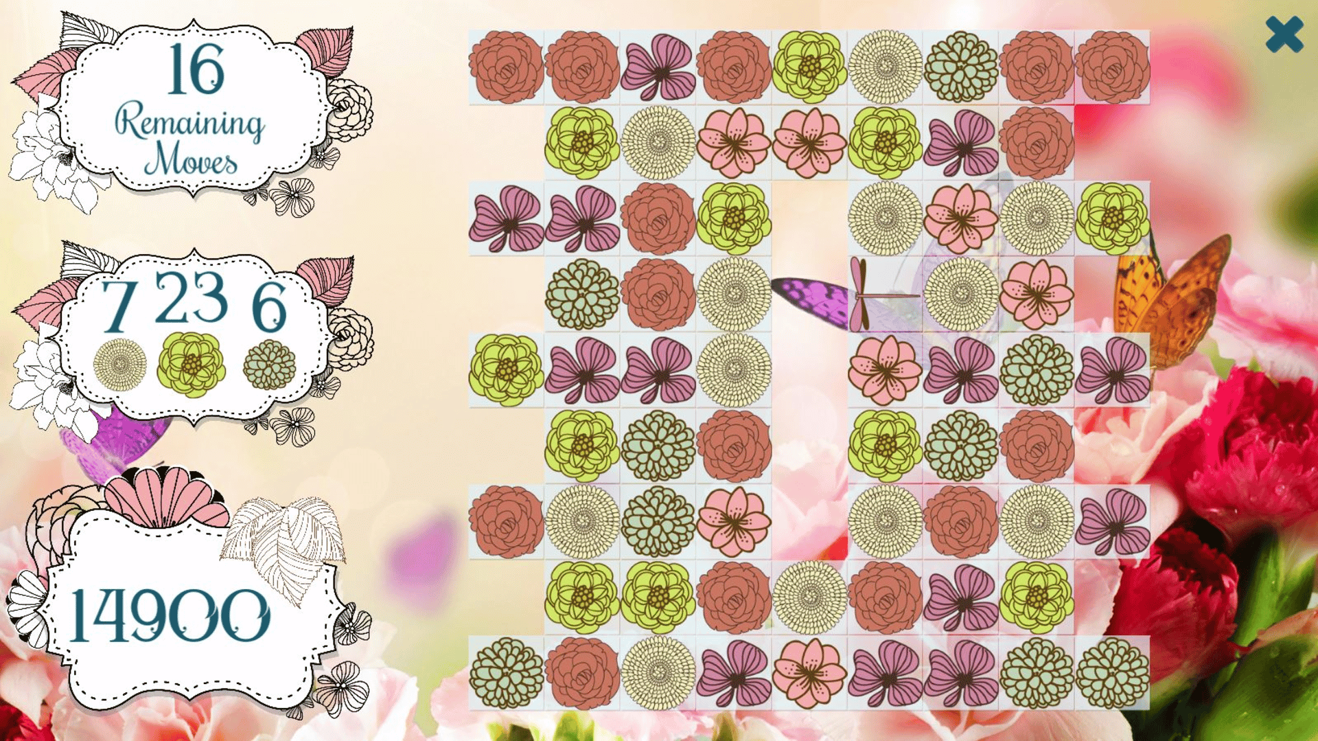 A simple, relaxing match 3 game. No frills, nothing to collect. Just straightforward play, with beautiful, nature themed backgrounds, and relaxing music.