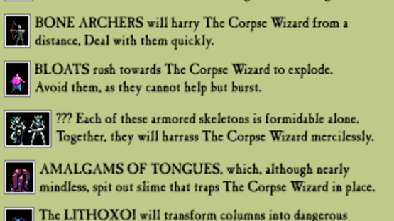 The Death of the Corpse Wizard is a coffee-break, arena Rogue-like.