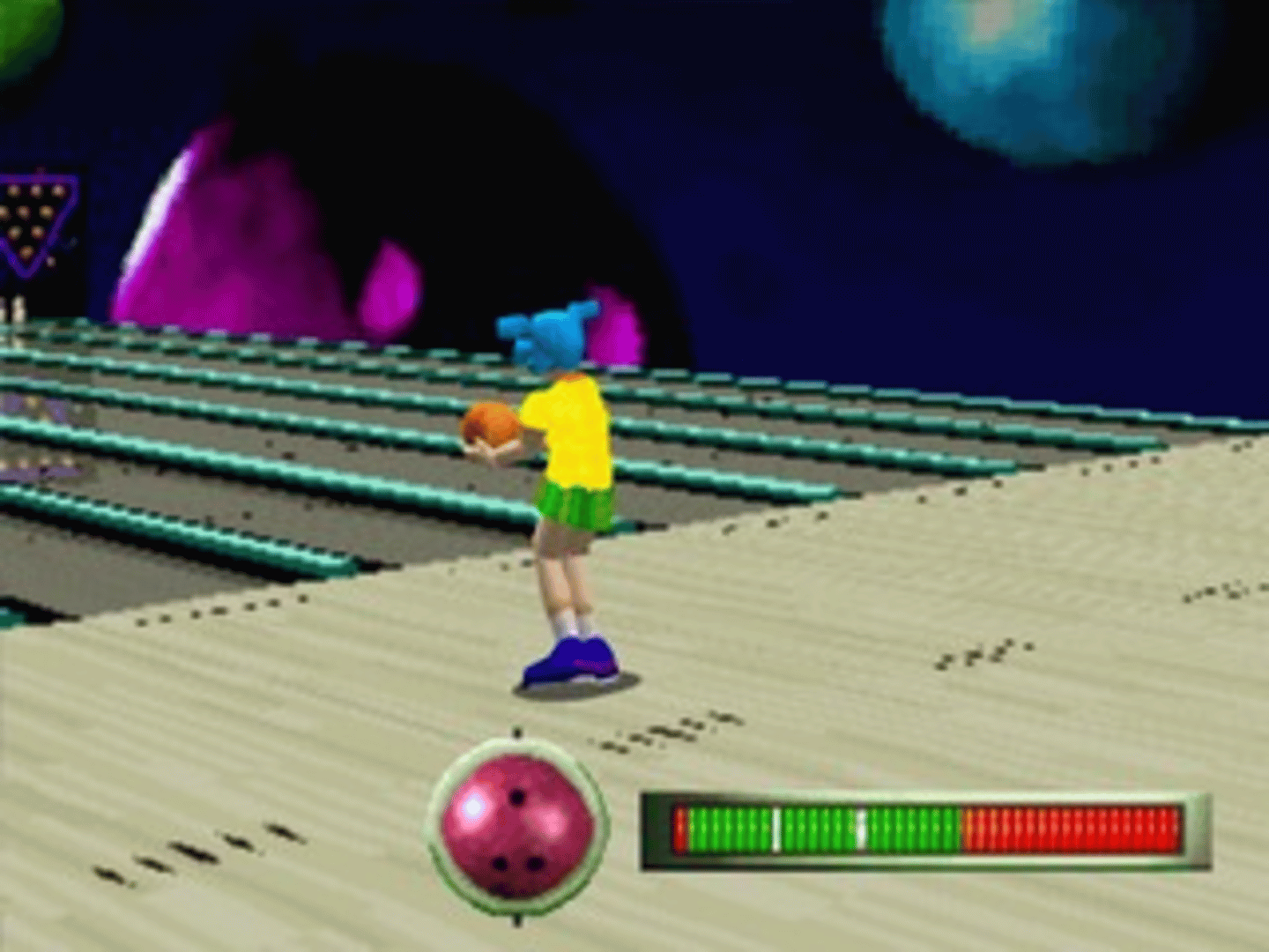 Family Bowling (also known as Wai Wai Bowling in a later release) is a bowling game that features 2 courts at the beginning of the game (Prism Town & Liberty Planet), 12 characters (only 4 are available at the beginning of the game) & 2 game modes: - Free or Tournament mode: In this mode there are 4 possible playable characters to choose (Maki, Kazuhiko, Shota & Ichika). The player can select also the number of opponents and if he wants that they will be computer or player opponents. - Challenge Mode: In this mode the characters are the same as in free mode but here the gameplay is about different bowling challenges that the player has to try to clear. The gameplay as usual in the bowling games begins with an overview of the court where the player has to select the direction of the shot, after that the character direction and finally select the power and effect of the shot. At the beginning the player can change the name of the bowler and also select if he want a right-hand or lefty player. The game allows up to four human players (using the same controller, not a multitap) to play at the same game.