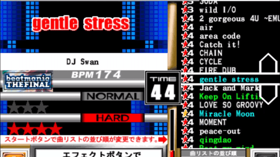 Beatmania The Final is a rhythm game developed by Konami. It is the thirteenth and final game in the beatmania series and is part of the BEMANI franchise. The game is played with a controller with one turn table and 5 keys, three white and two black. On the screen you will see bars moving from the top to bottom in columns representing each of the keys and the turntable. When the bars reach the judgement line it is time to scratch. The focus of the game is to make the ultimate beatmania version, thus a huge amount of songs was brought back. Because of this the game had to make some sacrifices due to memory limitations. Movies are now displayed in a little box with generic animations from the series playing. Only a few songs have unique clips. The miss animations are missing because of this as well. Detailed judgement information is now present on the side of play, like the one you could enable in 7thMIX. Stealth was added as a modifier. Songs from the entire series except from Dreams Come True show up. 116 songs were restored from earlier games in the series. An additional 62 new songs were added for a total of 178 songs. The largest song list in the entire series.