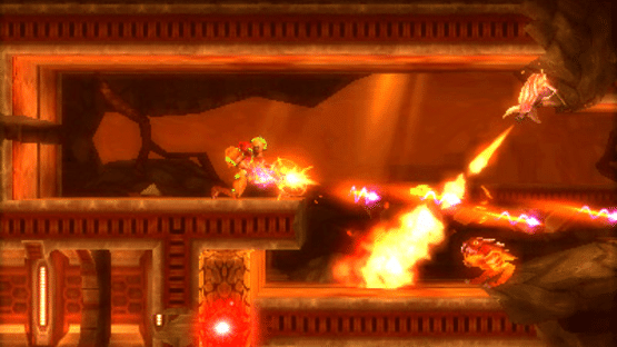 Metroid: Samus Returns is a remake of Metroid 2: Return of Samus. It uses a 3D graphic style with a side view camera that zooms in and changes for cutscenes. It also has new mechanics, items, and abilities. "Brave the hostile terrain of an alien planet teeming with vicious life forms as legendary bounty hunter Samus Aran. Her mission? Terminate the Metroid menace in this masterful reimagining of her 1991 Game Boy adventure. Samus Aran’s arsenal has been enhanced with new moves and abilities that are sure to help her face the deadly surprises that await. This intense, side-scrolling action platformer is a great entry point into the Metroid franchise and perfect for returning fans as well, and it’s available only on the Nintendo 3DS family of systems."