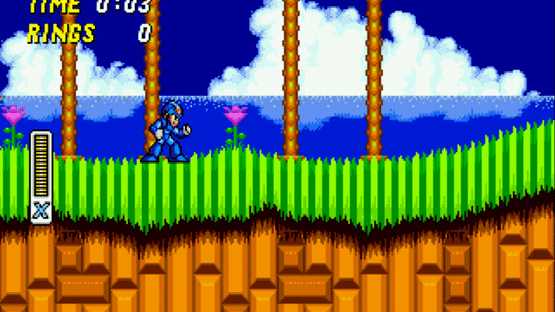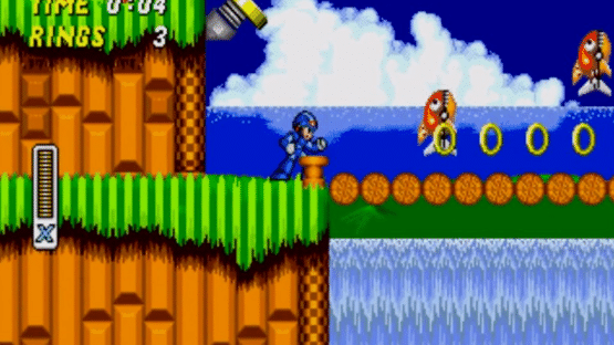 Mega Man X in Sonic The Hedgehog 2 is a ROMhack/mod of Sonic The Hedgehog 2 which lets the player control Mega Man X instead of Sonic, with all of his signature attacks, like the charge beam, the wall jump and the dash, and X can also get the weapons from his enemies, like in his own games.