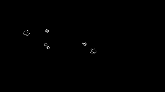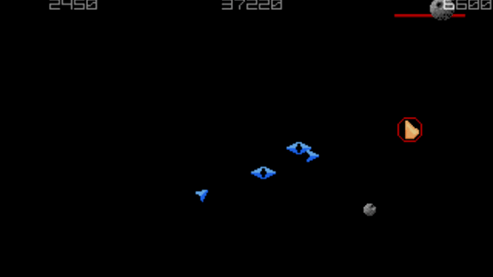 Like in the original Asteroids the objective is to score as many points as possible by destroying asteroids and flying saucers. The asteroids come in three different sizes. If the player fires at and hits a large asteroid, it breaks into medium size asteroids. If the player fires at and hits a medium asteroid, it breaks into small asteroids. If a player fires at and hits a small asteroid, it disappears. Different points are awarded for hitting each size of asteroid, and for hitting flying saucers. The player controls a ship that can rotate left and right, fire shots straight forward, and thrust forward. Asteroids Deluxe replaces the hyperspace feature with shields which deplete with use. Other differences include asteroids which rotate and a new enemy which is dubbed a "killer satellite" which would, when shot, break apart into three smaller ships that homed in on the player's position. The screen of the game is wrapped both vertically and horizontally so that if any object moves past the top edge of the screen it reappears on the bottom edge at the same lateral location, and if it moves past the left side of the screen, it reappears on the right side of the screen in the same vertical location. Asteroids Deluxe swaps vector graphics of the original for bitmaps. In 2007, AtariAge self-published a cart release of Asteroids Deluxe for the Atari 7800.