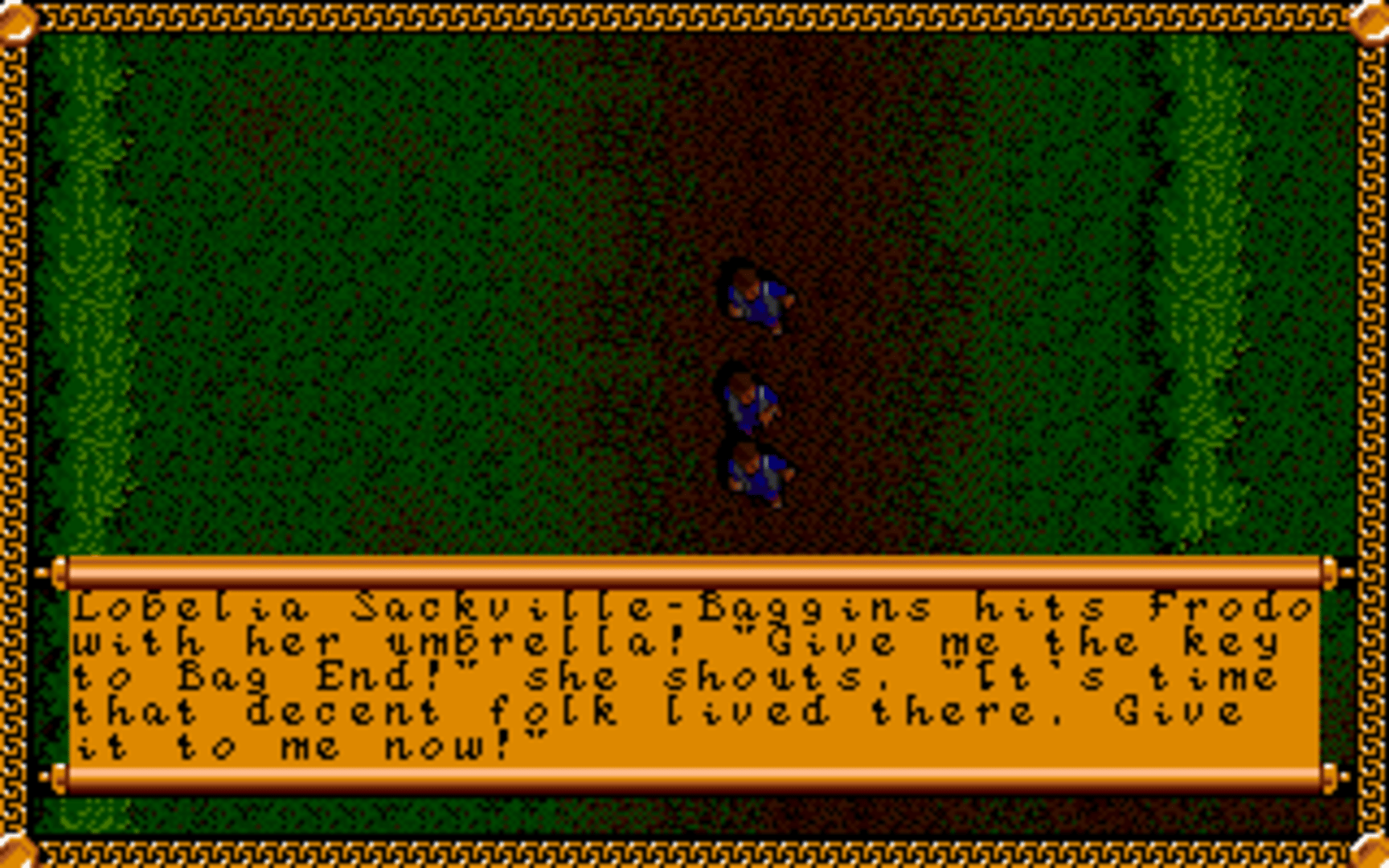 J.R.R. Tolkien's The Lord of the Rings, Vol. I is a fantasy role-playing game based on The Fellowship of the Ring, the first volume of the Lord of the Rings book trilogy by J.R.R. Tolkien. The events of the game follow those depicted in the book rather closely, though a few characters and occurrences are not present, and many quests have been added. Characters belonging to various races and nations join Frodo on his quest; these include key figures from the book as well as several characters unique to the game. The CD version of the game features cutscenes taken from the animated Lord of the Rings movie by Ralph Bakshi.