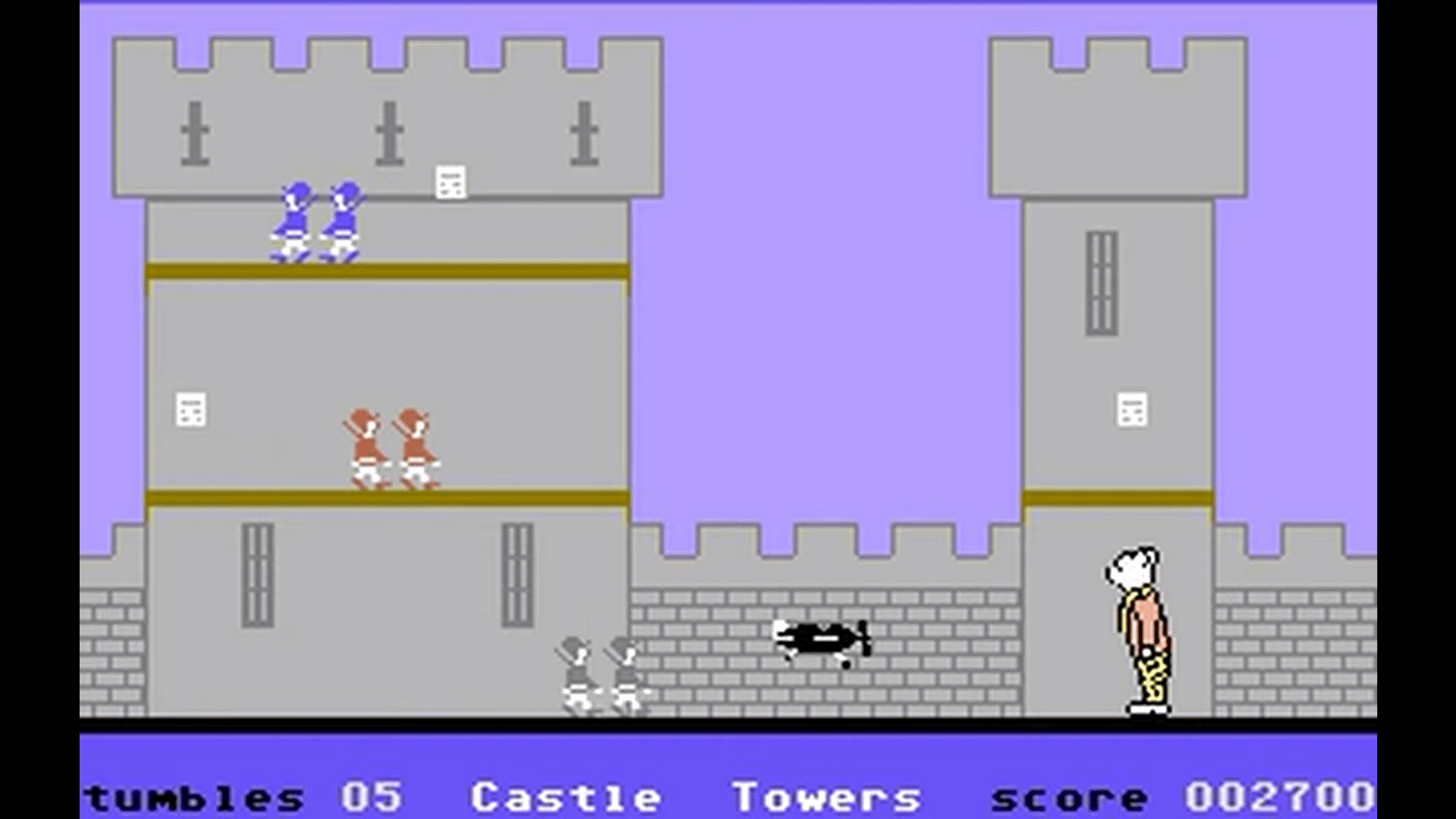 Poor old Rupert's been left behind after helping Mr. Bear. His friends have all gone to the Toymaker's party. To help him get there they have laid a trail of invitations pinned to the walls of the Toymaker's castle. Your job is to walk Rupert past the invitations to collect them. When you have cleared all of the invitations from each of the four linked screens in the level, you can pass to the next level by going to the doorway, which will open automatically There are eight levels for you to walk through before you reach the party. Each level is a different area of the castle You start off in the castle grounds, for instance. Every level has a different set of problems for our adventurous friend. Some of the toys he meets on the way will help him and even let him fly, while some will hinder him. There are four different routes to the party. This lets you explore some of the castle to see what is in store for Rupert.