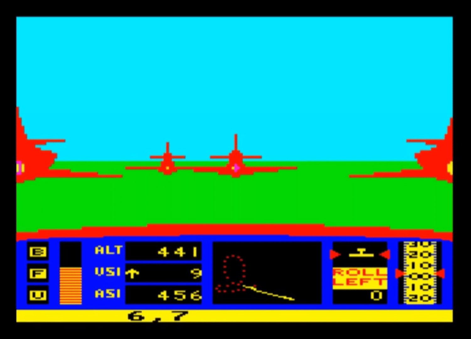 Fly as one of the RAF's legendery Red Arrow aerobatic flight display team, and pull off spectacular stunts in this Spectrum flight simulator.