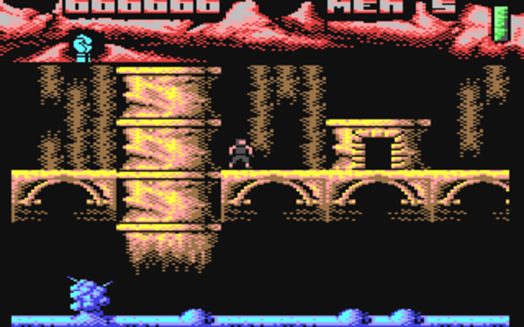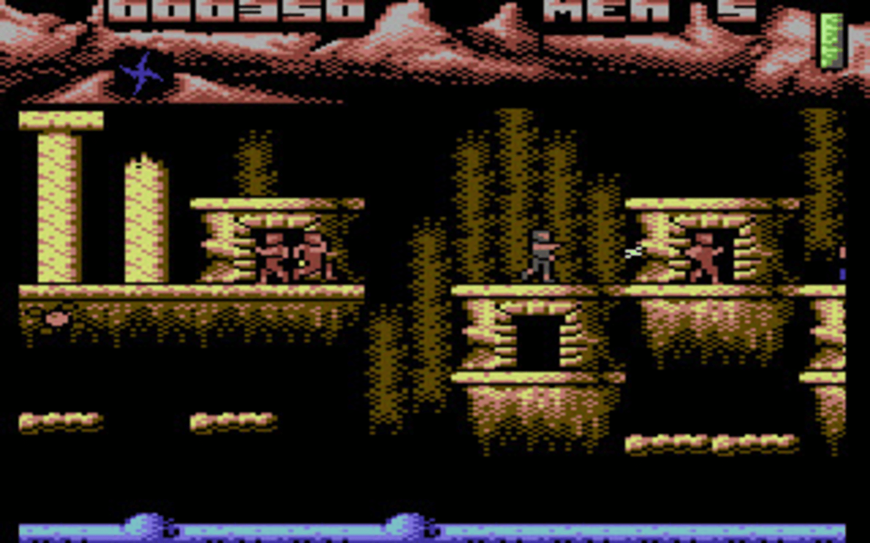 Players take control of a ninja and must guide him safely through various side-scrolling levels, jumping over pits, dodging obstacles and defeating other ninjas. In every stage, there are numerous doors that constantly spawn new attackers, although there are never more than four enemy ninjas onscreen at the same time. At first, the player's ninja can only defeat his enemies by jumping on them. Defeating three enemies in a row gives access to additional ranged weapons: shuriken, bombs, a flamethrower and a rifle. Apart from other ninjas there are also indestructible, moving obstacles and other enemies including golems, worms and birds.