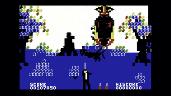 Zounds! And Gadzaoks! You were just out to do a little target practice with your bow and arrow when you lost your way. Now the moon is coming out and there are some strange rustling noises coming from the bushes, Egad! You have mistakenly wandered into the Forbidden Forest. Only your skill as an archer can protect you now. Here they come. Giant spiders and unbelievable cruel monsters. Move quickly, aim accurately, destroy the monsters and you just may escape from the Forbidden Forest!