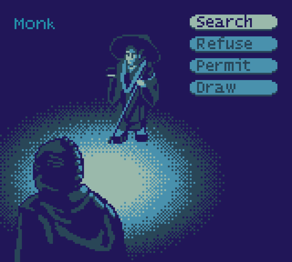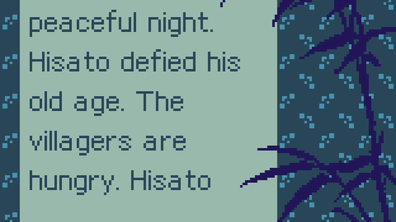 Hisato No Saku is a retro, GameBoy inspired, turn-based fighter. Take on the role of Hisato, the village elder, as he guards the gate awaiting the arrival of the town's young warriors. Decide who enters, turn away those who would do the village harm. But be careful, because all strangers won't leave willingly.