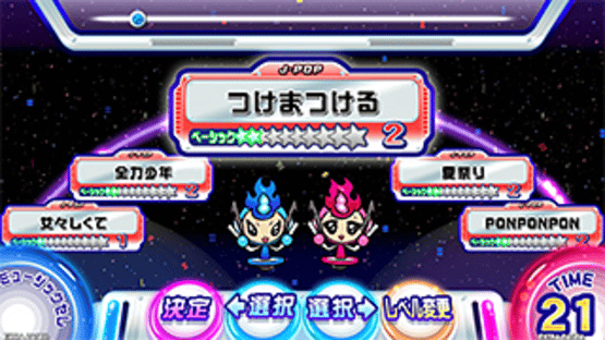 Mirai Dagakki FutureTomTom is a short lived drumming game from Konami in their BEMANI franchise. The cabinet consists of 4 tom-tom drums in a row where one or two players play in time with falling objects in the screen. The game features a couples mode where notes are placed in such a way that you often end up hugging the other player (with one player playing the inner two drums while the other having the outer two drums), in this mode you are scored not only on how well you were doing, but your compatibility. The game makes use of a kinect camera to show you drumming in the background of the game, as well as creating a collage of your performance that you can retrieve from the eAmuse app at the end of the game. The camera is also used for special gesture commands in some songs.