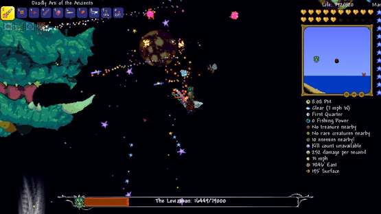 The Calamity Mod is a large content mod for Terraria which adds many hours of endgame content and dozens of enemies and bosses dispersed throughout the vanilla game's progression. The Calamity Mod also features several harder difficulty modes, five new biomes and new structures, a new class, more than thirty new songs, over fifty recipes for previously uncraftable vanilla items and other assorted changes to vanilla gameplay.