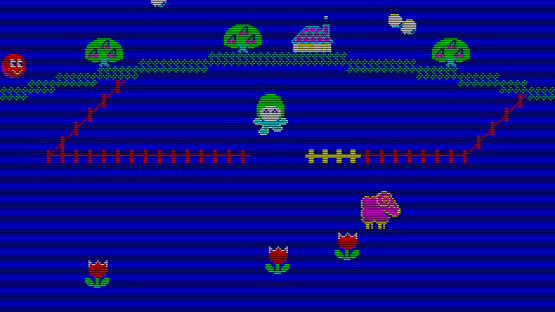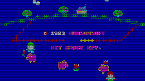 You play as a shepherd who must gather sheep into the pen before nightfall so that he can go date his girlfriend. You catch the sheep by running into them and then dragging them to the pen. You can close the pen gate to stop sheep from escaping. But watch out for the wolves who will tear open the gates again. The game was programmed by Kikuta Masaaki, notable for making the Hudson hit game Binary Land.