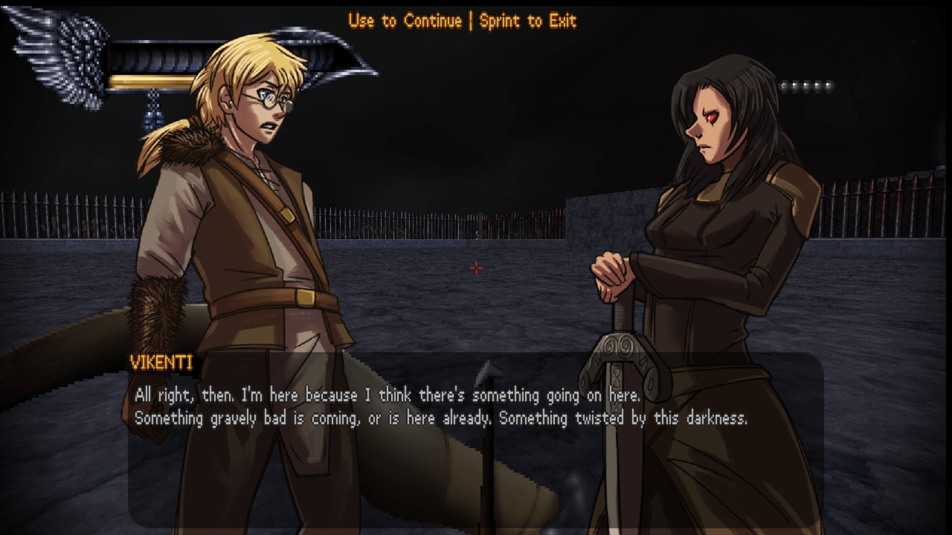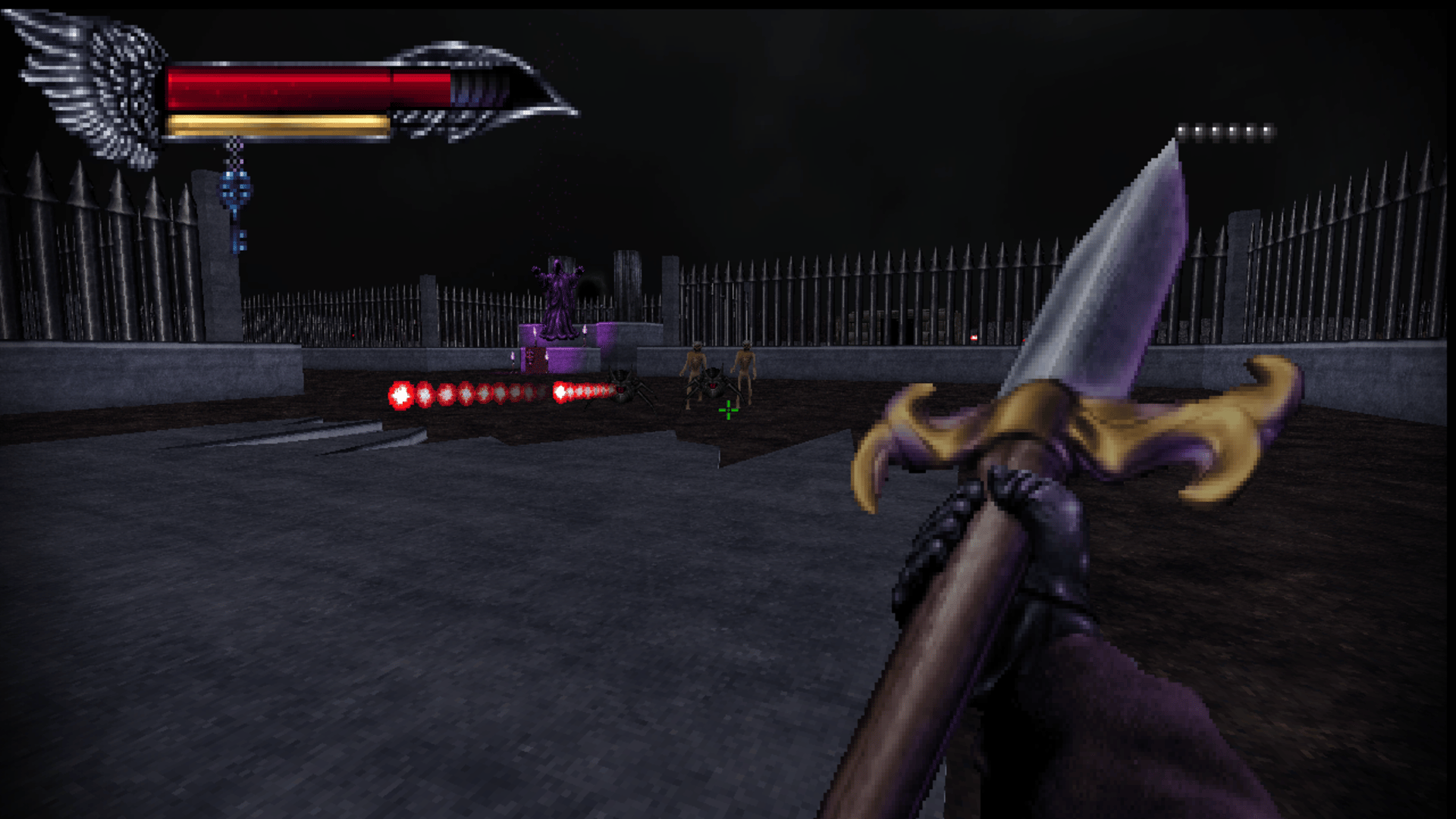Nocturne in Yellow is a fantasy medieval first-person shooter using an extremely modified version of the idtech1 engine, also known as the Doom engine. In it, you play as a dude marching through ancient castles with the realization that every myth and story ever made in the history of man is true and all of them are pissed off at you for having a pulse and four functional limbs. You utilize a bow, some grenades, and a spear in order to fend them off, wandering deeper to stop the rise of the dark lord threatening to spread death, destruction, and hurt feelings all around. Being a first-person shooter, you step into the eyes of a protagonist and wield whatever weapon he was smart enough to grab before wandering off on this death quest. Primary fire, well, fires whatever weapon you're using, while secondary fire lobs a grenade at whatever looks funny at you. Run around through seven maps, picking up items and stabbing dudes before reaching a boss at the end, and then stab the boss. Boss drops artifact, pick up artifact for more powers for your bow, and then move on to the next level to repeat as needed. After you do this seven times, you win! If you play on Story Mode, occasionally there will be long walls of text about people talking about their feelings. If you play on Arcade mode, all of the boring text will be stripped out, leaving you free to stab enemies without hearing about their failed love life.