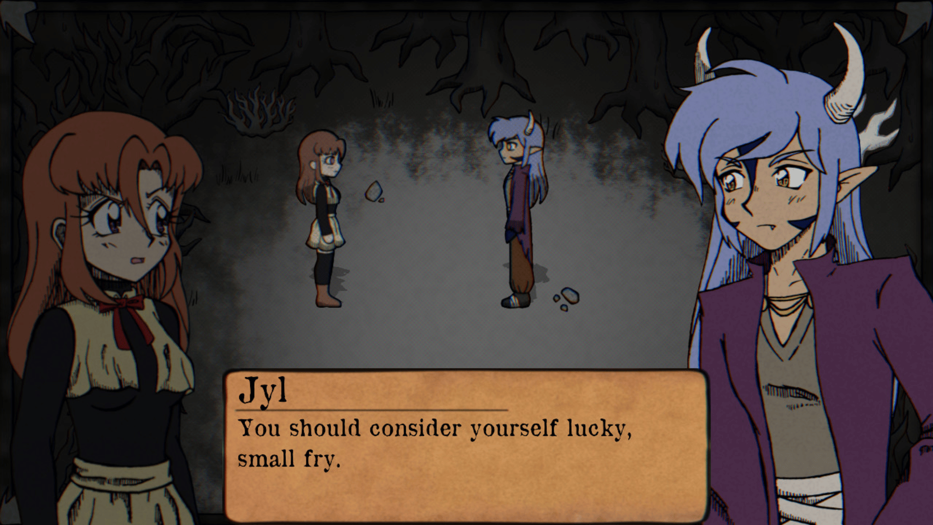 The first episode of an indie horror RPG series with hand-drawn visuals inspired by 90s anime.
