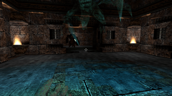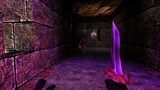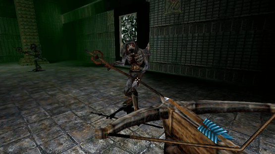 Eternal War: Shadows of Light is a Christian-themed first/third-person shooter running on a modified Quake engine. Eternal War expands upon the gameplay formula of Quake by introducing additional features and playing modes. Mike's journey spans 17 levels, which can be completed either in single-player mode or in co-op with other players. There is also another game mode called Flood, which involves fending off waves of demons and sealing the gates through which they come. This is primarily a multiplayer mode, but it can also be played with friendly bots. The game's setting has strong medieval fantasy motives. The eight weapons at the player's disposal either come from a medieval arsenal (dagger, crossbow, sword) or are various holy spells like Smite and Trinity Blast which are powered by manna. Essentially, most weapons function similarly to those of Quake. However, each also has an alternate firing mode that can be toggled at any time. Alternate attacks deal more damage at the cost of increased ammo consumption. The monsters also have medieval fantasy designs, sometimes reminiscent of Heretic or Hexen. These include zombies, levitating necromancers and various humanoid fighters in medieval attire. Many of the enemies have special abilities and alternate attacks, making them even more dangerous. One special feature unique to Eternal War is the player's ability to pray, which allows Mike to regain full health. It is not possible to fight while praying, but the player is surrounded by an aura that will banish any demons that might try to attack him.