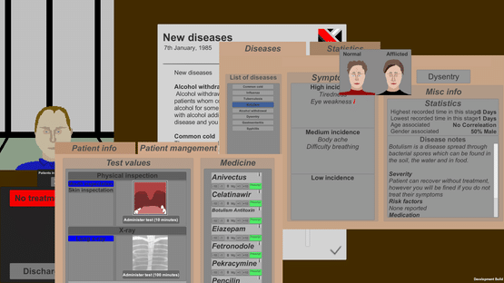 Play as a doctor in the communist country Kolinisav, diagnose over 30 different unique diseases and treat your patients with 20 different medicines while avoiding the rage of the commissar and the greed of the underworld.