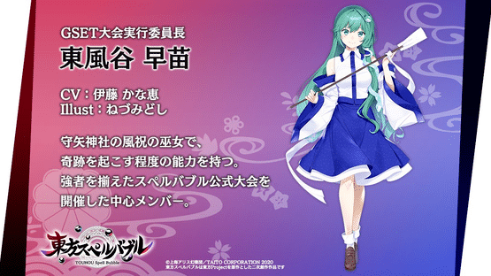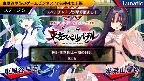 Side Story Pack, vol. 2! The title is, "Sanae Kochiya's Gaming Business, Moriya Shrine Ablaze"! This B-story takes place just before the Spell Bubble Tournament.