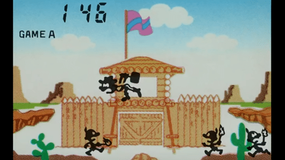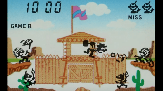 The Game & Watch game Fire Attack, released March 26, 1982, was a game where your character is a civil war-looking general, trying to defend his fort from an onslaught of Native Americans attacking with flaming torches.