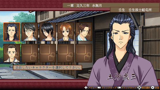 Bakumatsu Renka Shinsengumi has been upgraded into a high-resolution graphics New features added such as "Log Jump" to re-read previous dialogue, auto-save when making choices and more to make the game an overall comfortable experience A bonus element added that can view all the illustrated characters, allow players to enjoy the charm of Bakumatsu Renka Shinsengumi A girl who is the only daughter of the head of a small town dojo in Aizu. But her father who dreamed of making himself a name with the sword suddenly left. She had no choice but to close the dojo, which had a few students, and serve Teruhime, the sister-in-law of Aizu Domain daimyo Katamori Matsudaira, with the help of her mother who worked at the daimyo's residence in Edo. The girl, who entered the daimyo’s domain as a replacement for her remarried mother, eventually realizes that her father's dream of becoming a skilled swordsman becomes her own dream. Teruhime, who opened her heart to the girl’s troubles, recalled the group of swordsmen she heard about from Katamori, who served as the Military Commissioner of Kyoto. Mibu Roushi a group of swordsmen were among the ranks of the Aizu Domain, Teruhime asked her brother-in-law Katamori for the girl to join the group. And so, despite being a woman, she heads to the Imperial capital where the Mibu Roushi is based to make a name for herself with the sword. The Mibu Roushi is the group that would later become known as the "Shinsengumi."