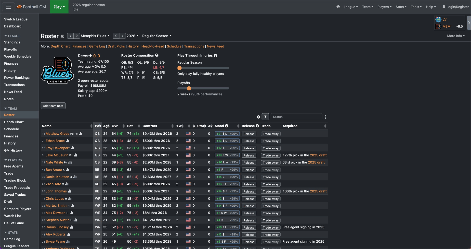A free-browser based sports team management game where you are the general manager of an american football team.