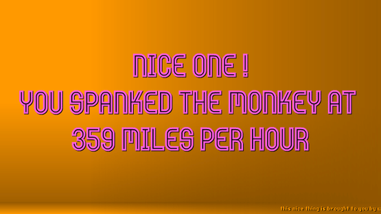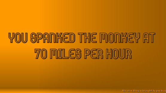 Spank the Monkey is a game where the player needs to spank a monkey as possible with a hand in order to get a high amount of high miles per hour. The monkey is positioned on the left and the hand on the right. The player needs to click the hand and drag it to the left with a quick reflex to spank.