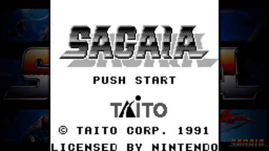 Sagaia for Game Boy (commonly known as Darius II) is a shoot 'em up video game originally released in 1991 for the Game Boy in Japan only. This game is a original title for the handheld console, mixing elements from the first two games while featuring its own unique levels. This game is single player only, not featuring formation bonuses and zone selection at the end of the levels, but the ending is divided into three depending on the difficulty. Since the game is on a monochrome system, items are identified by different symbols instead of colors.