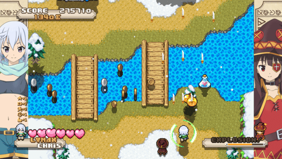 This is a mini-game that was only available via a download code bundled with first-run copies of "Kono Subarashii Sekai ni Shukufuku wo! -Kono Yokubukai Game ni Shinpan wo!" It features 6 stages, 8 playable characters, 4 difficulty settings, and "Caravan Mode," where the player has 2 minutes to rack up as many points as they possibly can.