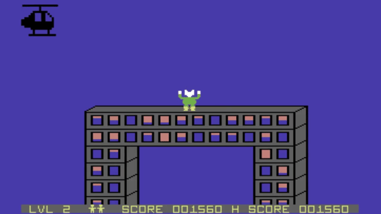 The player controls Harry the Ape who is attempting to climb a 150 floor tall office tower. The player can move up, left, and right, as the building scrolls vertically. The player must avoid closed windows, as they offer no handhold, and will cause your ape to fall. As the player ascends, they must avoid a zookeeper on a scaffold, falling bowling balls, earthquakes, and helicopters dropping nets. Occasionally a balloon will float up the left side of the building, and the player can hitch a ride on these to climb faster. The left side of the screen has a progress bar that shows how far the player has climbed the building. The player has one life to climb the building, and if they fall, they must restart.