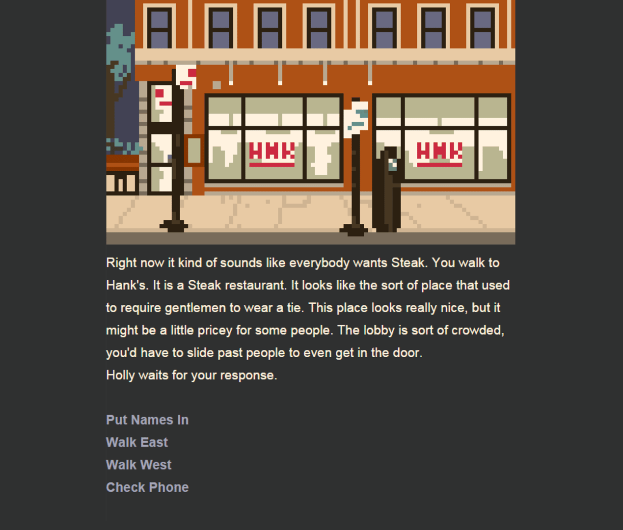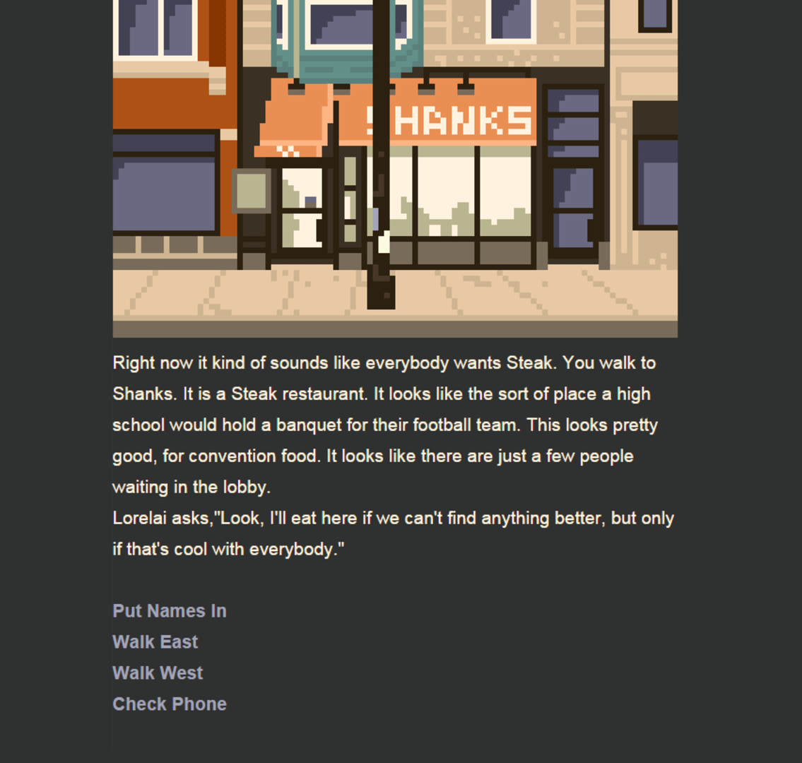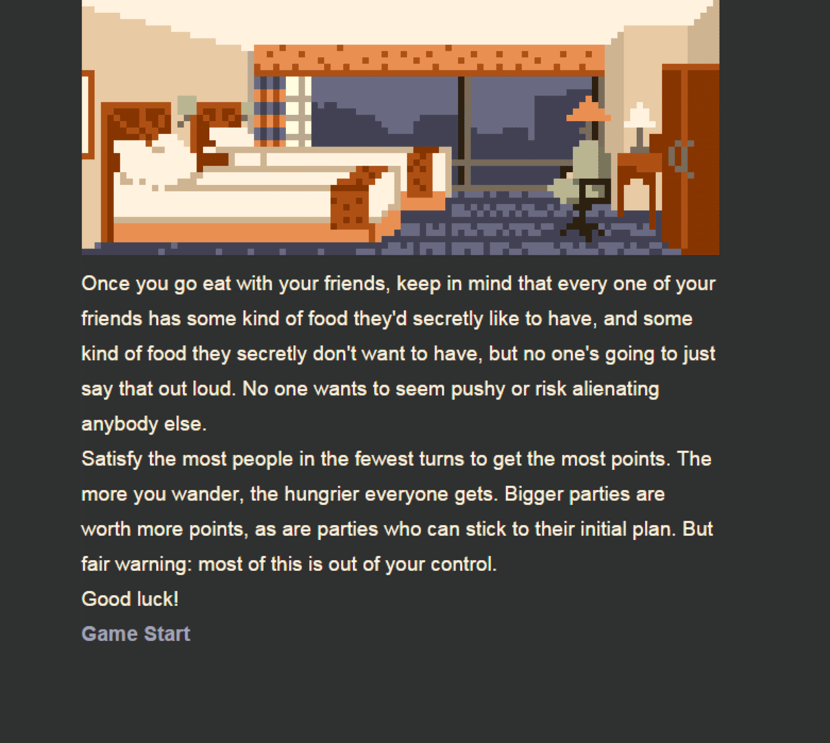 A choose your own adventure game about picking a good restaurant for you and your friend group to eat at.