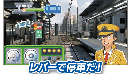 Densha de Go!! Kids (loosely translated to "Go by Train!! Kids") is an electric train simulation game developed by Taito and released by Square Enix for arcades (using PC-based Taito Type X4 hardware) in Japan on March 1, 2019. A spin-off of the 2017 game Densha de Go!!, Kids featured a simplistic single-screen arcade cabinet with a more child-friendly user interface and unique game rules (such as cleaning cartoon-ish obstacles from the window).