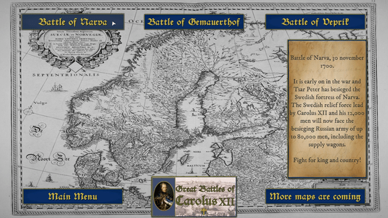 Great Battles of Carolus XII is a very simple hexagon-based strategy game developed by a new Swedish indie game studio. The player will be able to command one of Europe's most capable and bravest armies, the Swedish army. With the Carolean gå-på spirit, the player is expected to perform great deeds.