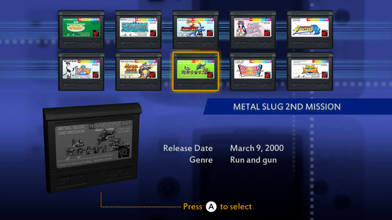 Four stellar games have been added to the six already on sale for a total of 10 amazing classics for you to enjoy! This selection includes the following games: - SNK GALS' FIGHTERS - SAMURAI SHODOWN! 2 - KING OF FIGHTERS R-2 - THE LAST BLADE: Beyond the Destiny - FATAL FURY FIRST CONTACT - SNK VS. CAPCOM: THE MATCH OF THE MILLENNIUM - METAL SLUG 1ST MISSION - METAL SLUG 2ND MISSION - DARK ARMS: Beast Buster 1999 - BIG TOURNAMENT GOLF