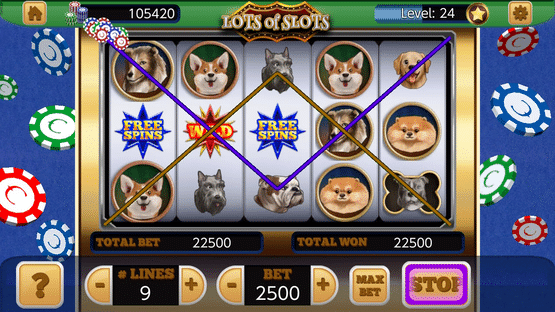 Enjoy Las Vegas casino slots action with Lots of Slots! 15 different casino slots machines to play including Gladiators, Aliens, Cats, Treasure Hunt, Dogs and more. You start with 25,000 FREE coins and win more with free bonus spins and level up rewards. Plenty of big wins, free spins. Just take a seat in the casino and spin, spin, spin while you win, win, win!