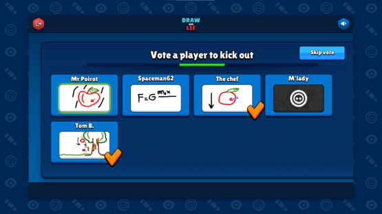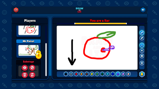 Draw, lie and ensure that your friends do not discover that you are the liar painter. Play now for free on this Among Us/Scribble crossover free browser game, perfect to have fun with your friends. At the start of the game, one of the players will be the liar, and the rest will know the secret word. When the time to draw begins, everyone draw something related to the secret word. Be careful! The liar is sneaking all the drawings, and he can sabotage one player per round blocking his vision or controls, or even erasing the drawing. When time is up, after seeing all the drawings, everyone has to vote a player to kick out, and the game ends if the liar has been caught, or if he has stayed alive until the end.