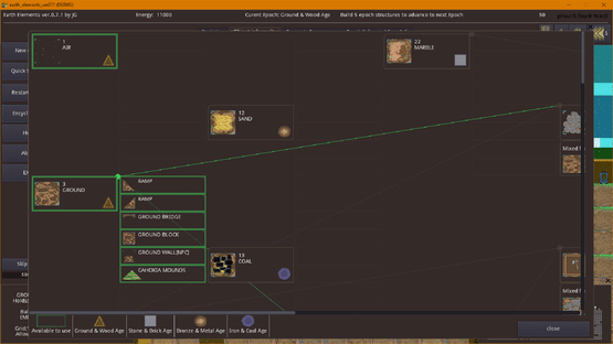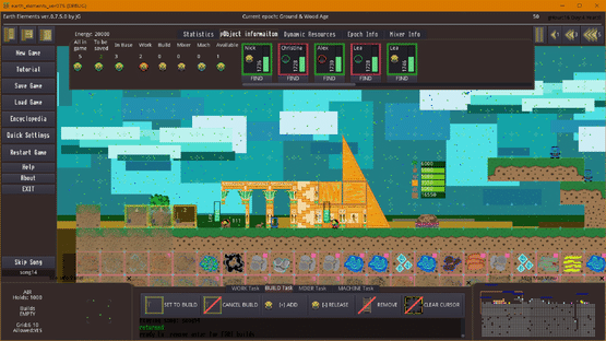 Earth Elements. In three words:Dig, Mix, Build. Resource collecting, building and surviving game with not one but a few of game characters. Start with digging of pElements on map, mix in mixers, build new features on map, advance in Epoch, finally reach Portal or collect specific amount to win game