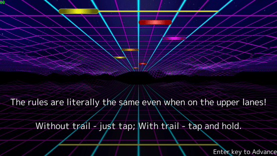 You may think this is a simple rhythm action game with the simple controls of tapping and holding the keyboard, but what's that above? Yes, you need to pay attention to those as well! Can you handle the 8-lane madness?