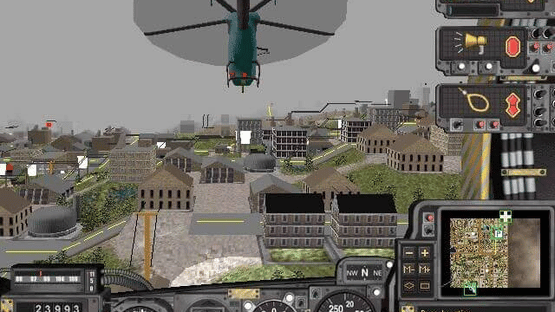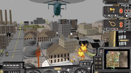 SimCopter lets players explore SimCity 2000 environments from a helicopter pilot's perspective. Players respond to various emergencies across custom or pre-made cities, including fires, bank robberies, and medical evacuations. The game integrates with emergency services, allowing players to coordinate with police, fire departments, and ambulances while completing missions in their aircraft.