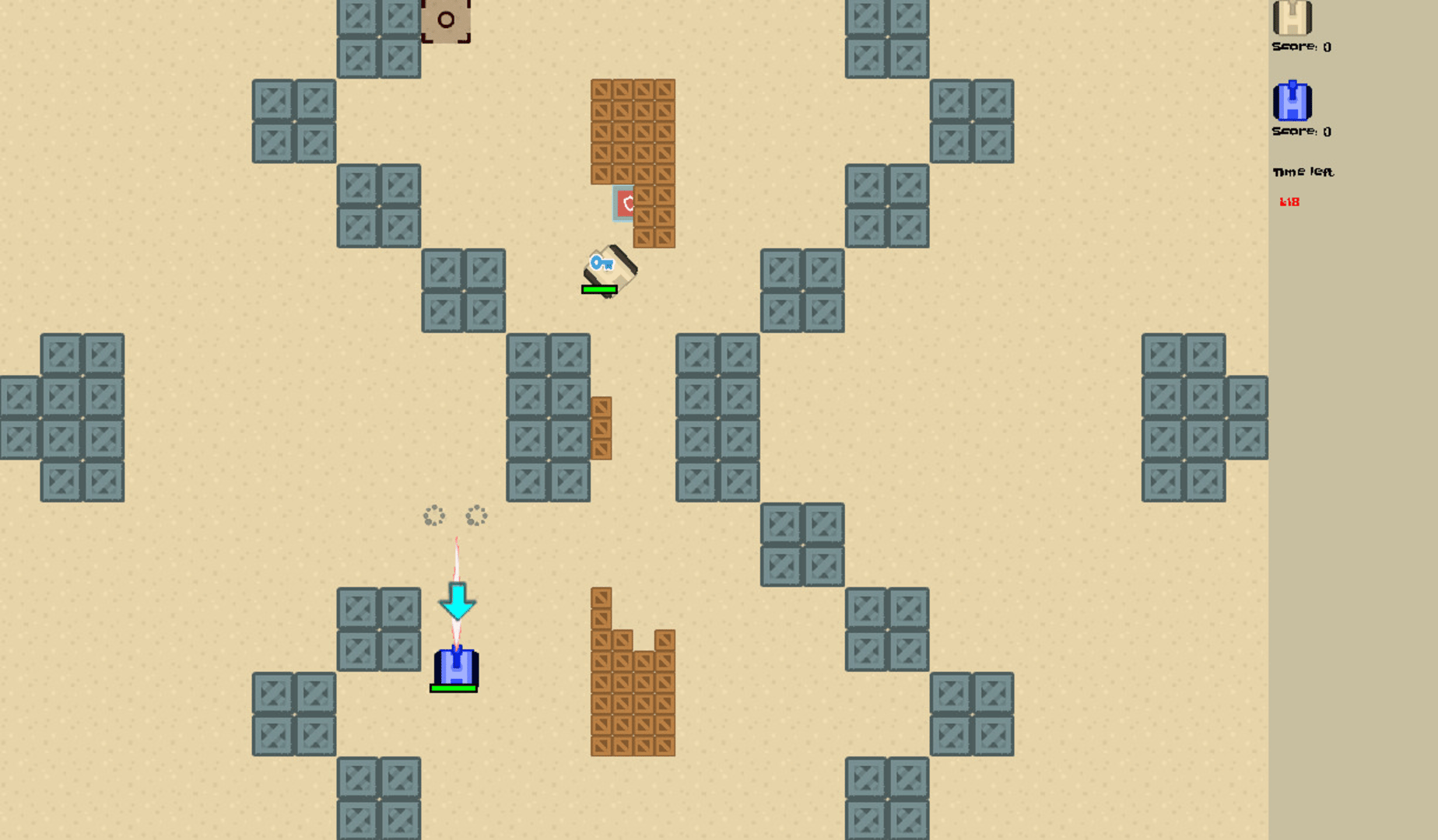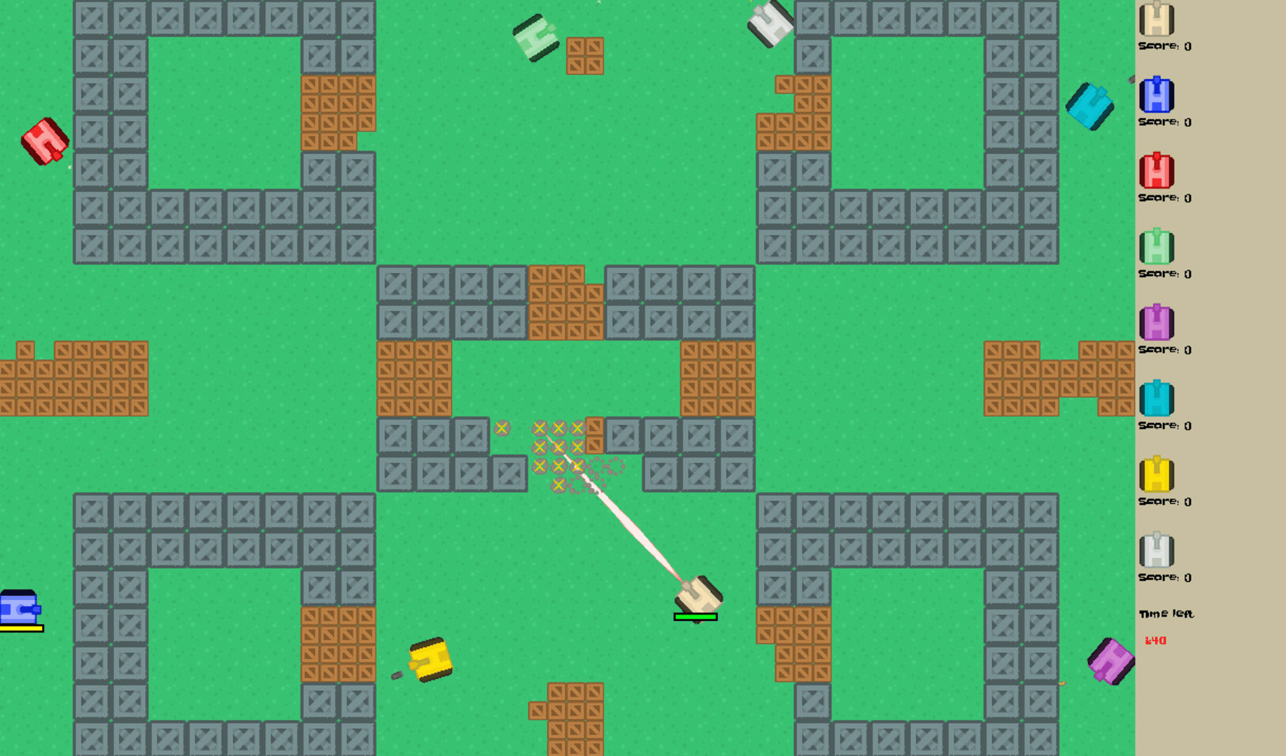 Battle against friends using tanks and their weapons. Find bonuses on map and use them to your adventage. All tanks can use bullets, lasers, bombs, temporary speed or special sphere where bullets are slower. Game can be streamed on Twitch and other streaming platforms.
