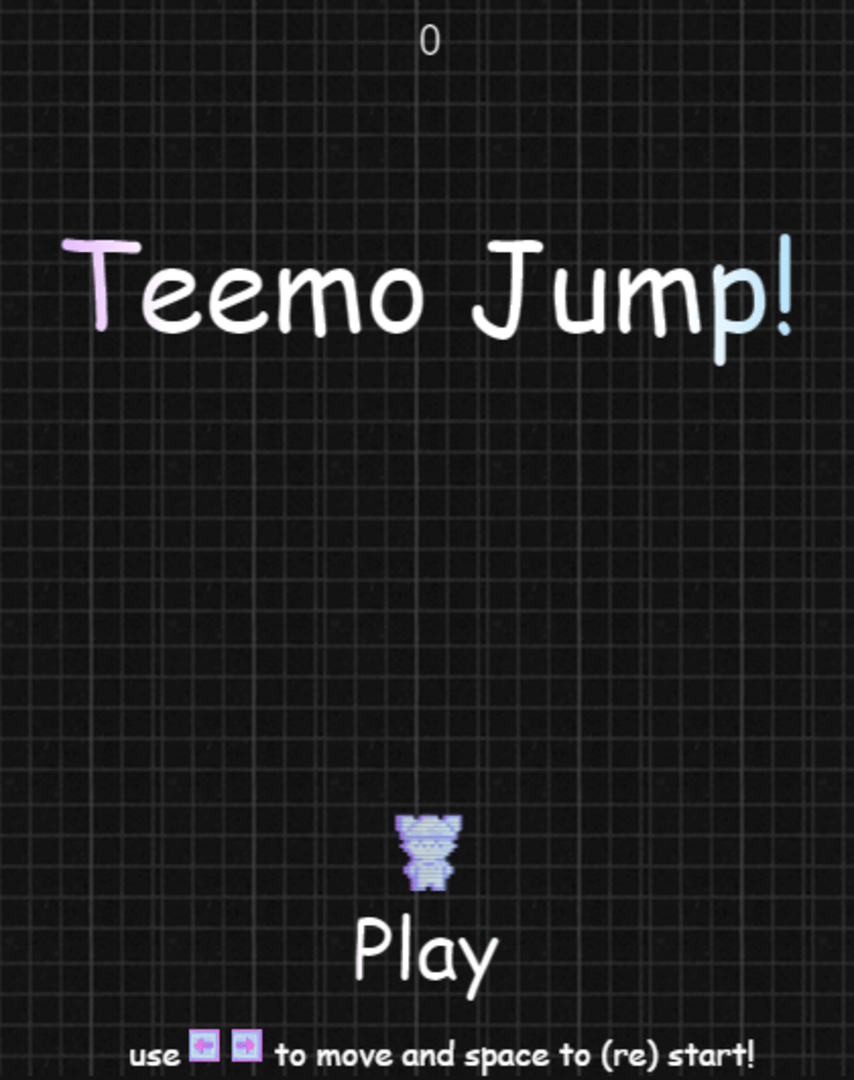 Teemo Jump! brings a fresh twist to the classic gameplay of Doodle Jump by featuring one of the most beloved champions from League of Legends—Teemo! In this game, players navigate Teemo through a series of platforms, aiming to reach new heights while encountering charming nods to his mischievous persona. With engaging visuals inspired by the League of Legends universe, Teemo Jump combines nostalgia with creativity, offering both LoL fans and casual gamers a fun, addictive experience.