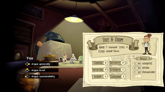 RPG group looking for hero to save Mirrormore realm. Benefits of the job include reasonable work hours, your own towel and a moderate chance of resurrection in the event of your untimely demise. Interested in the open hero position? Great! That completes the party for a nice game of D&D (“Dice & Doom”, that is): Henry He avoids eye contact like a pro, yet rarely holds back when speaking his mind. In this party he plays the vegan carnivorous plant Trudie, a skilled artisan. You yourself Naturally, the best player at the table and of course playing the hero of this epic tale: An awesomely hip tailor and possible savior of worlds with the totally catchy nickname “Siebenstreich”. The GM The mastermind and ingenious storyteller of “Dice & Doom”. A creative opportunist with a passion for retro-gaming, pop culture and Blueberry Daiquiris (non-alcoholic). Siebenstreich’s Nerdventure is an upbeat 2D adventure game, pioneering the fantastic genre of pop culture fairytales. Look forward to witty dialog, puzzling puzzles (yep, sorry, pun intended), an amazing soundtrack as well as lovingly hand-drawn artwork and animations. While your party of unlikely heroes sets out to rescue a realm in distress, you’ll take cooking lessons with Mr. & Mr. Giant, outsmart a gang of flies and prove yourself in the improvised game shows hosted by the guerilla unicorn Sylvester Stallione. Among other things. And, rumor has it, the fabled throne Up'Zhykling might be up for grabs as well. Give a green thumbs up and save Mirrormore! Siebenstreich’s Nerdventure... …is a beautiful, hand-drawn…