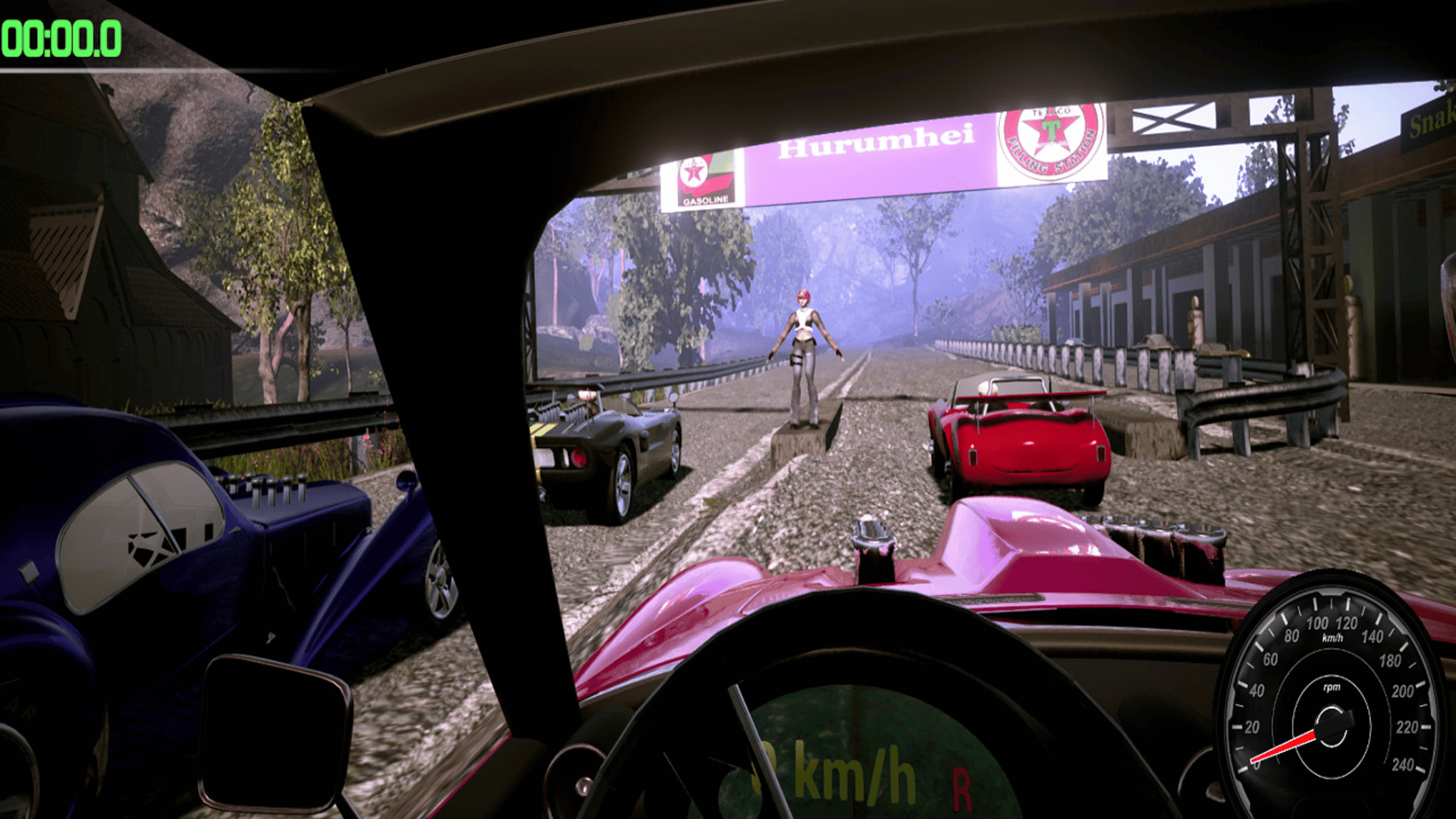 Build and race a hotrod car.First you pick up parts from a waiting train using a truck and fork lift.Assemble car in a workshop using a crain Drive to the raceway with your hotrod.The russian mafia will try to stop you from entering a race.Race against other cars in a very demandig 5 lap race.
