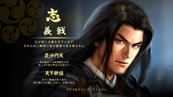 An additional scenario available for "Nobunaga's Ambition: Taishi." Harukage Nagao succeeded his father, Tamekage Nagao of Echigo, as leader of the Nagao clan. However, his weak nature soon had control passing to his younger brother Kagetora.