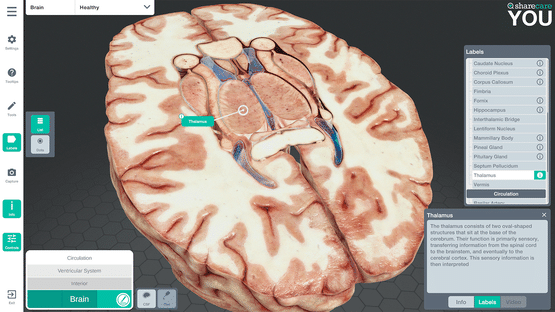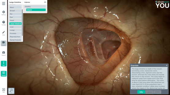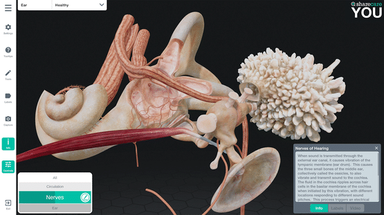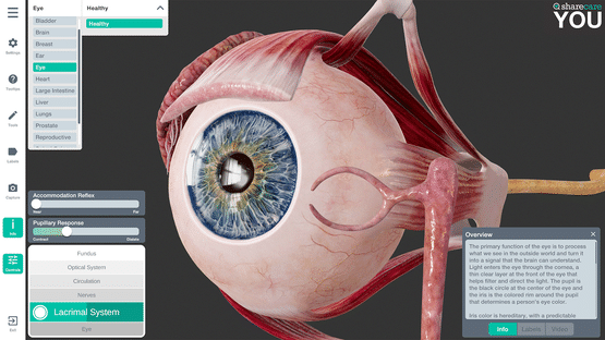 Sharecare You is an immersive, photorealistic simulation of the human body, enabling anyone to explore its astonishing details in 360 degrees. Travel inside systems and organs, dissect them, visualize their natural and disease states, and even personalize the human body to be a virtual YOU!
