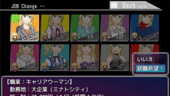 This is a sample game created in "RPG Maker MZ" by Photosho Shokunin. Comical love simulation RPG about a young girl hunting for the ideal husband.