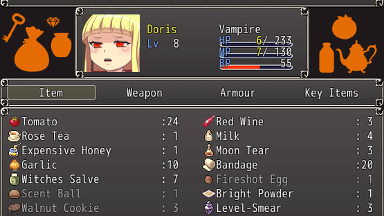 A casual hack n' slash RPG! Doris is a vampire that awoke in a graveyard one night. After asking the nearby nun, she discovers that the mysterious Lord of Monsters stole her castle and all her possessions 100 years ago. Doris flies into a rage and sets off into demon territory to take back what's rightfully hers.