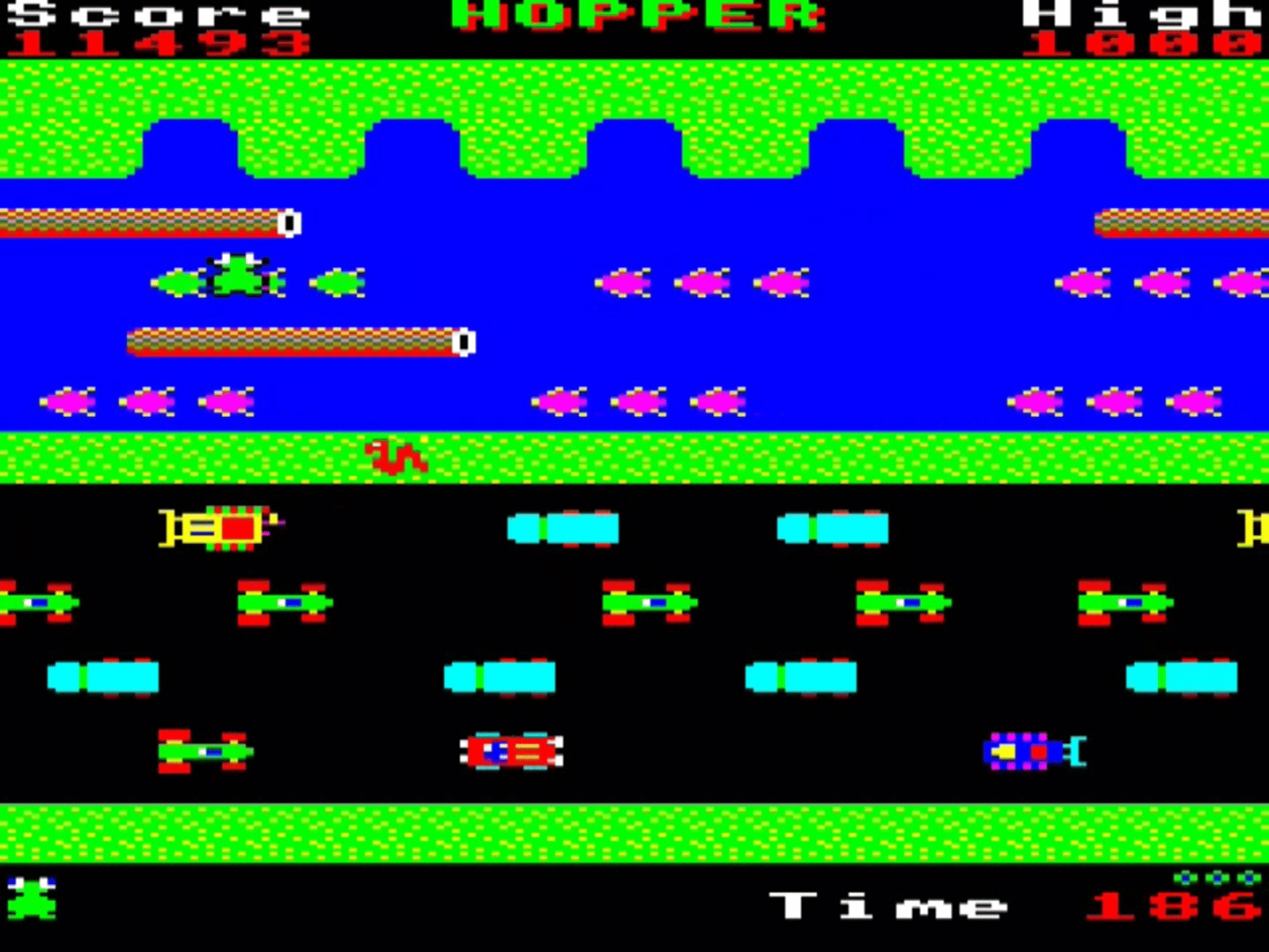 Get the frog from the bottom of the screen to the top. You'll cross a road with trucks and cars and then you'll cross a river with logs and crocodiles.