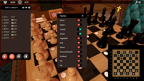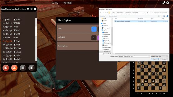 Caïssa Board is a modern chess GUI that is capable of interfacing with many chess engines while being tuned toward simplicity of use. It also provides tactical and strategic hints such as the possibility of forks or the controlled squares and is shipped with the public domain chess engine Gull 3.