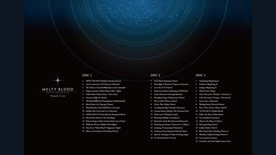 This edition includes the following Game: Melty Blood: Type Lumina, Takashi Takeuchi-illustrated Box, 96-page art book, Three-disc Melty Blood Sound Collection